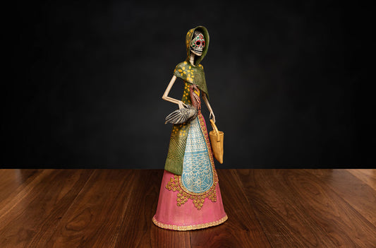 Catrina Tradicional Embarazada de ceramica de barro pintada a mano