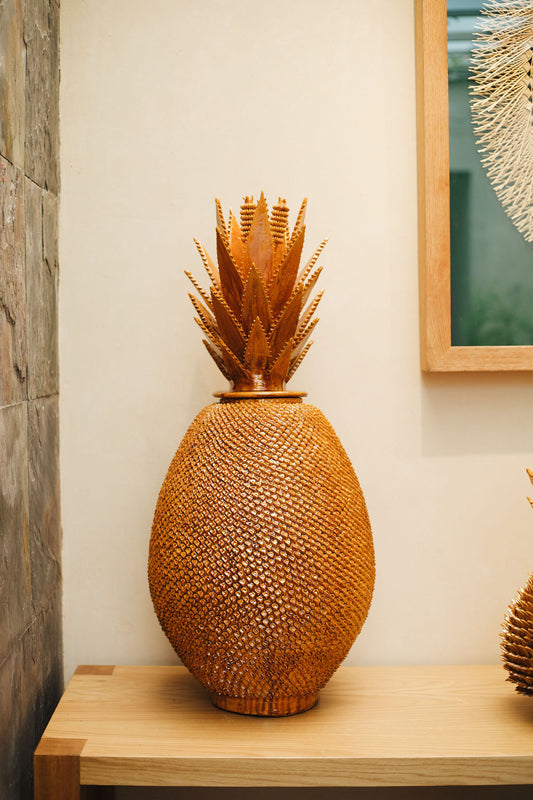 Piña de Barro vidriado con diseño pellizco y penacho de agave 1 m