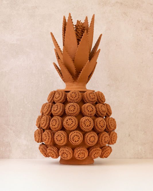 Yellow enameled Pineapple with leaflets design and agave leaves