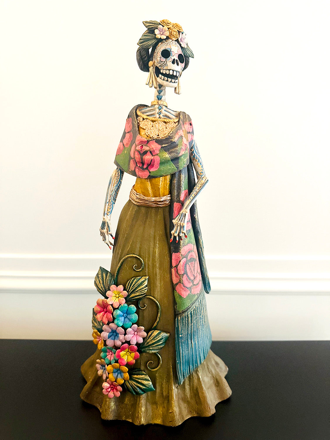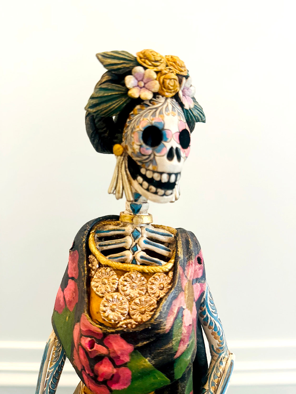 Handmade Catrina designed as Frida Kahlo. Special Edition Catrina.