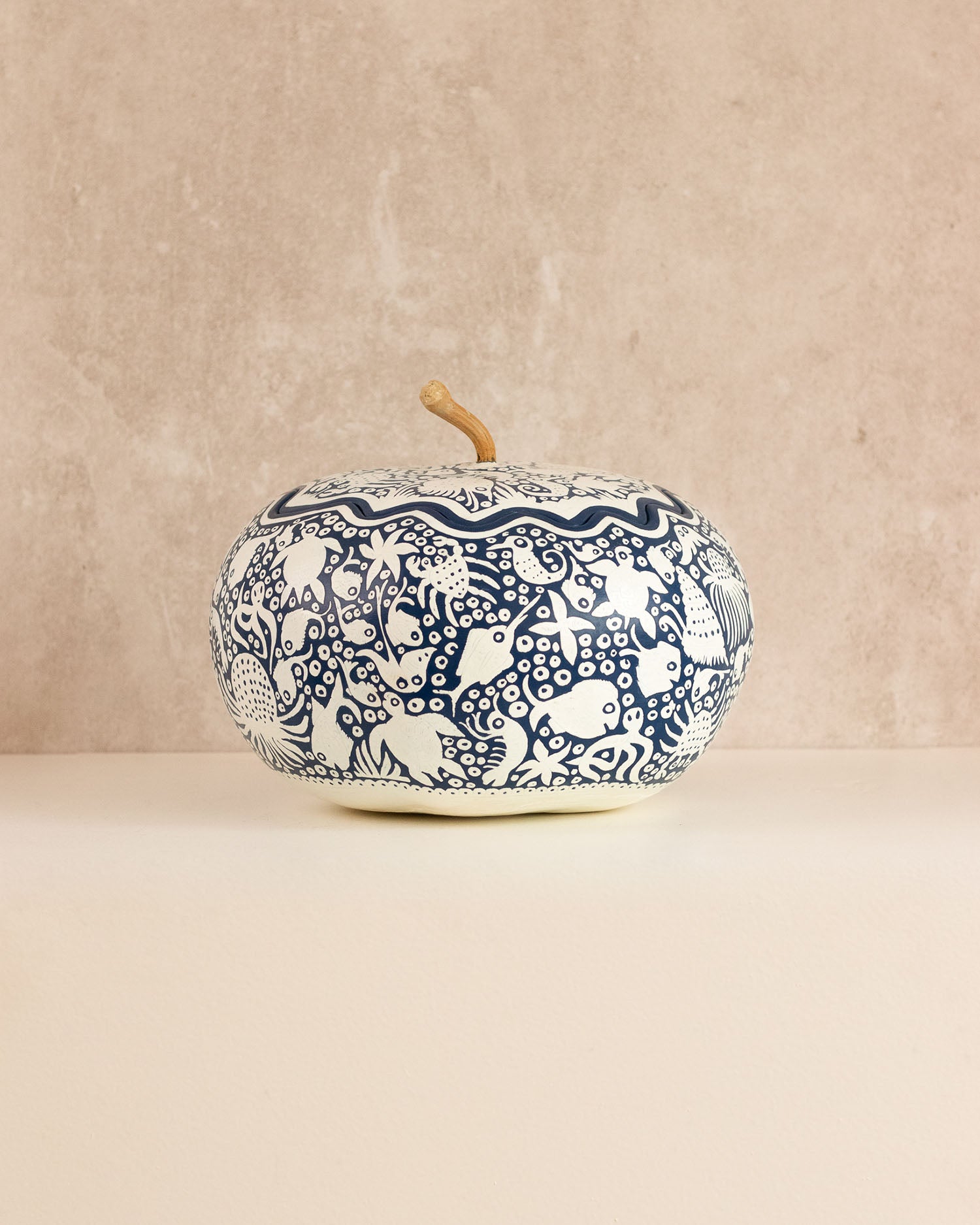 Conocidos como bules o guajes, es un tipo de calabaza de cascaron duro el cual se ha utilizado desde la antigüedad. Su técnica es llamada maque y son decorados de forma tradicional con pinturas vegetales que los mismos artesanos originarios de Olinalá, Guerrero hacen a base de aceite de chía, tecoxtle, calcita, cuarzo, caliza y pigmentos naturales.