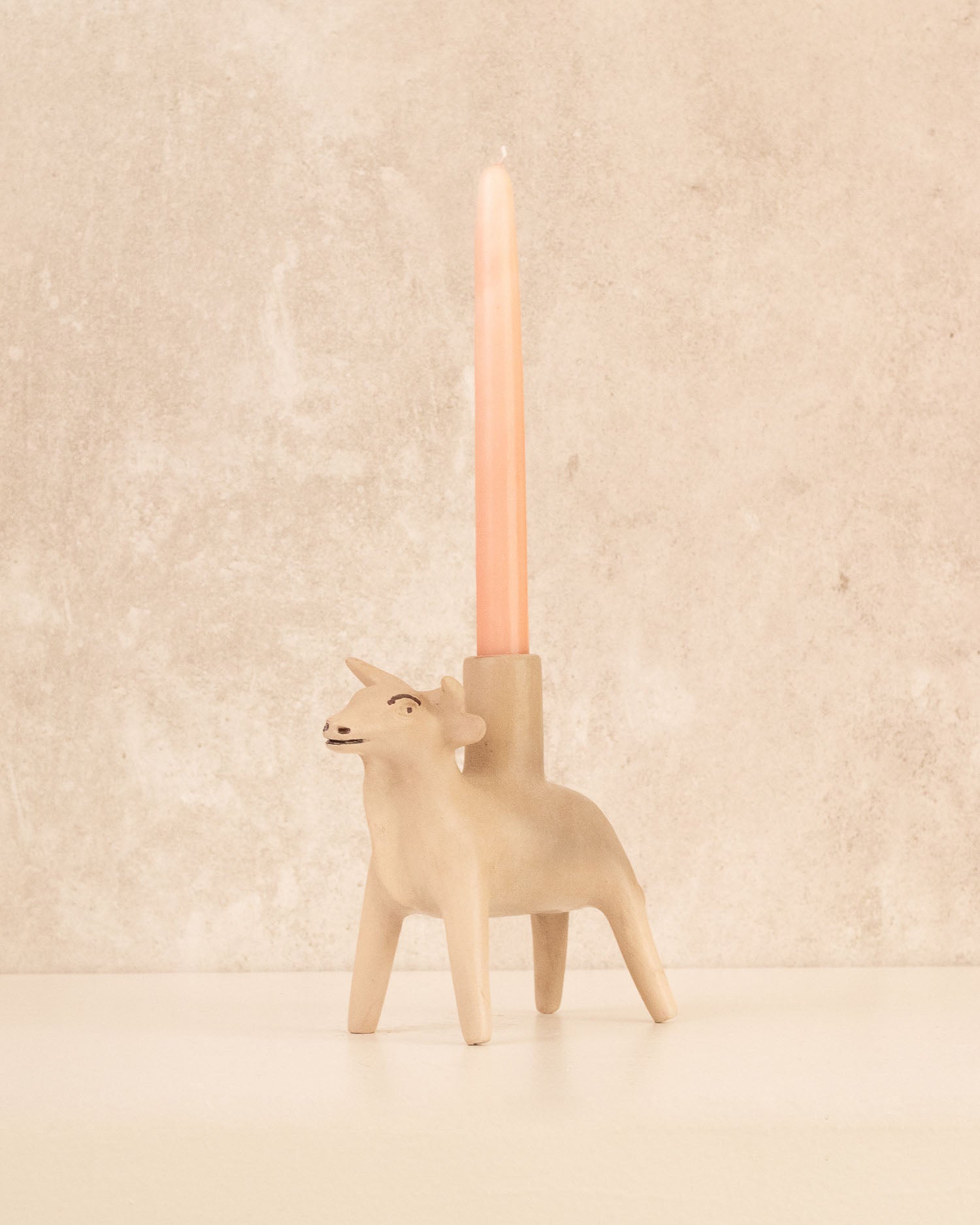 Porta vela sencillo de Barro Bruñido color Blanco Perla.